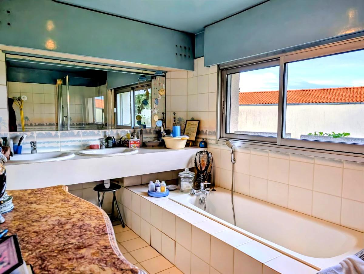 - Salle de bains avec baignoire, douche (1 an), double vasque,