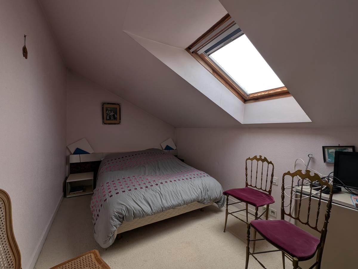 - Une chambre mansardée sur moquette avec velux,